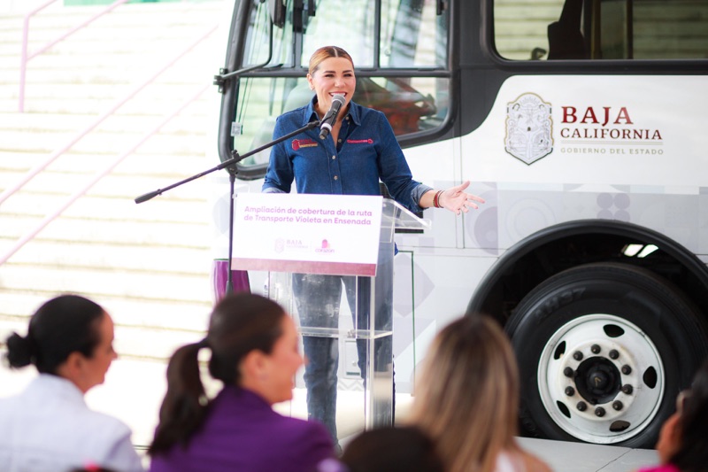 ENSENADA.— En respuesta a una petición que mujeres de la comunidad de Maneadero le hicieron a la gobernadora Marina del Pilar Avila Olmeda, a partir de este lunes 7 de julio, el servicio de Transporte Violeta en Ensenada, gratuito y exclusivo para mujeres y menores de 12 años, extenderá su recorrido hasta la Delegación Maneadero, específicamente a la colonia de Rodolfo Sánchez Taboada.