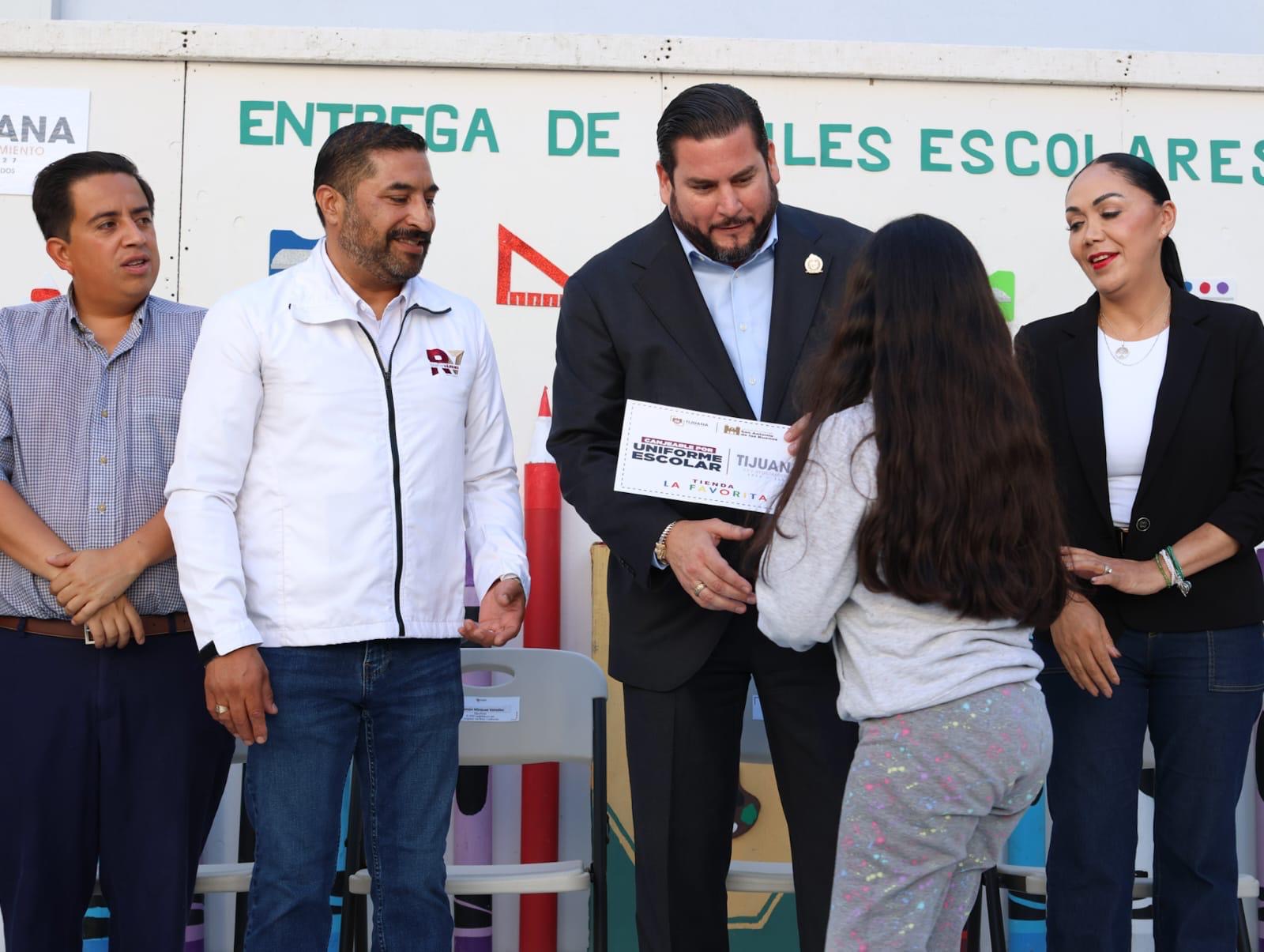 *Tijuana, Baja California, a 29 de agosto de 2025.* En el marco de la estrategia ‘Juntos de Regreso a Clases’, este viernes, el presidente municipal Ismael Burgueño Ruiz, llevó a cabo la entrega de 100 vales de uniformes y 500 paquetes de útiles escolares a niñas, niños y jóvenes de la Delegación San Antonio de los Buenos.