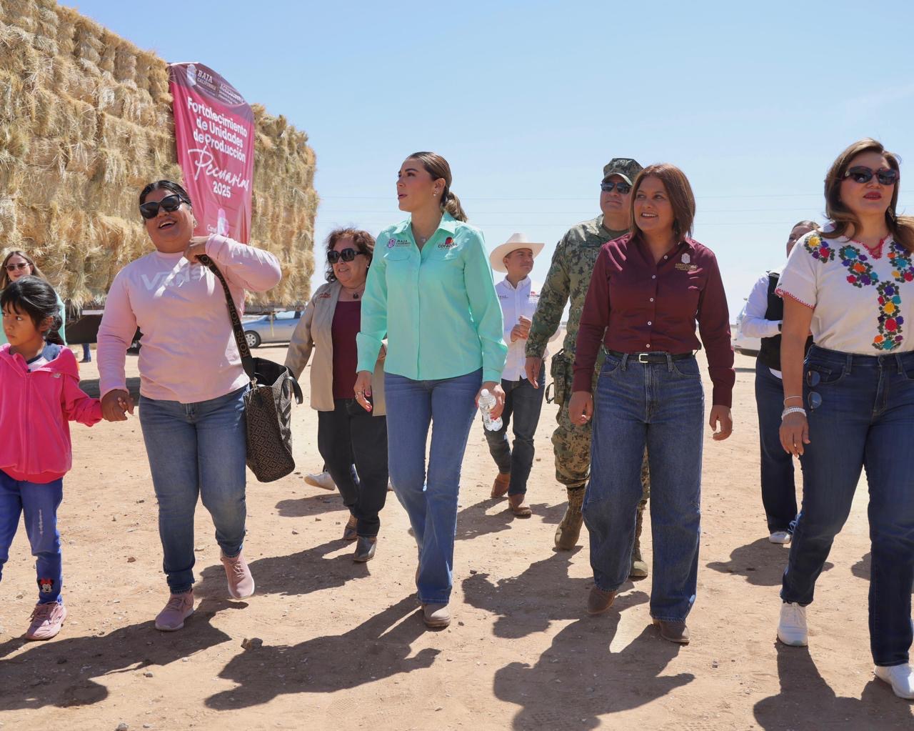 En Villa de Jesús María, la mandataria estatal sostuvo un encuentro con ganaderas y ganaderos, donde supervisó los avances de programas agropecuarios y encabezó la entrega de insumos para fortalecer la actividad productiva.