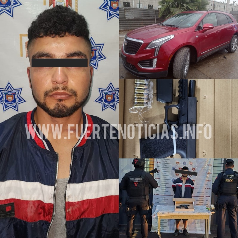 Tijuana, B.C. – Agentes de la Policía Municipal detuvieron a un César Manuel de 23 años, originario de Jalisco, cuando circulaba en una camioneta Cadillac XT5 color rojo, modelo 2023, la cual tenía reporte de rob• desde agosto.