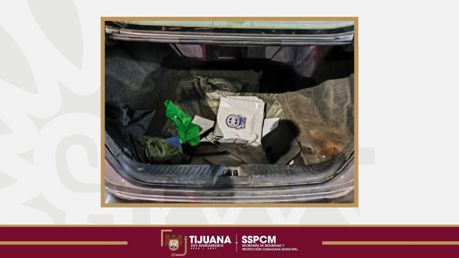 Tijuana, Baja California, a 16 de septiembre de 2025.- Derivado de las acciones de vigilancia que mantiene la Secretaría de Seguridad y Protección Ciudadana Municipal (SSPCM), en la garita de Otay, agentes adscritos a esta corporación atendieron el reporte de un conductor que solicitó apoyo tras detectar anomalías en su vehículo antes de cruzar hacia los Estados Unidos.