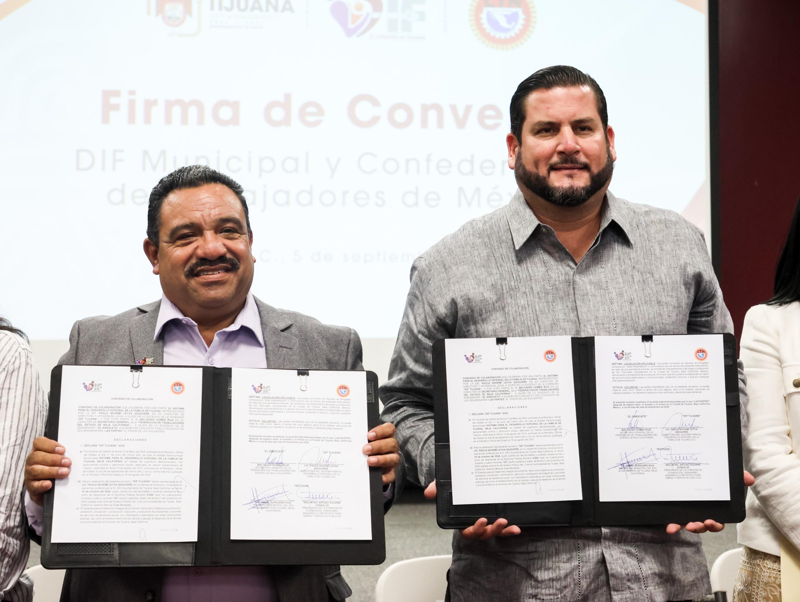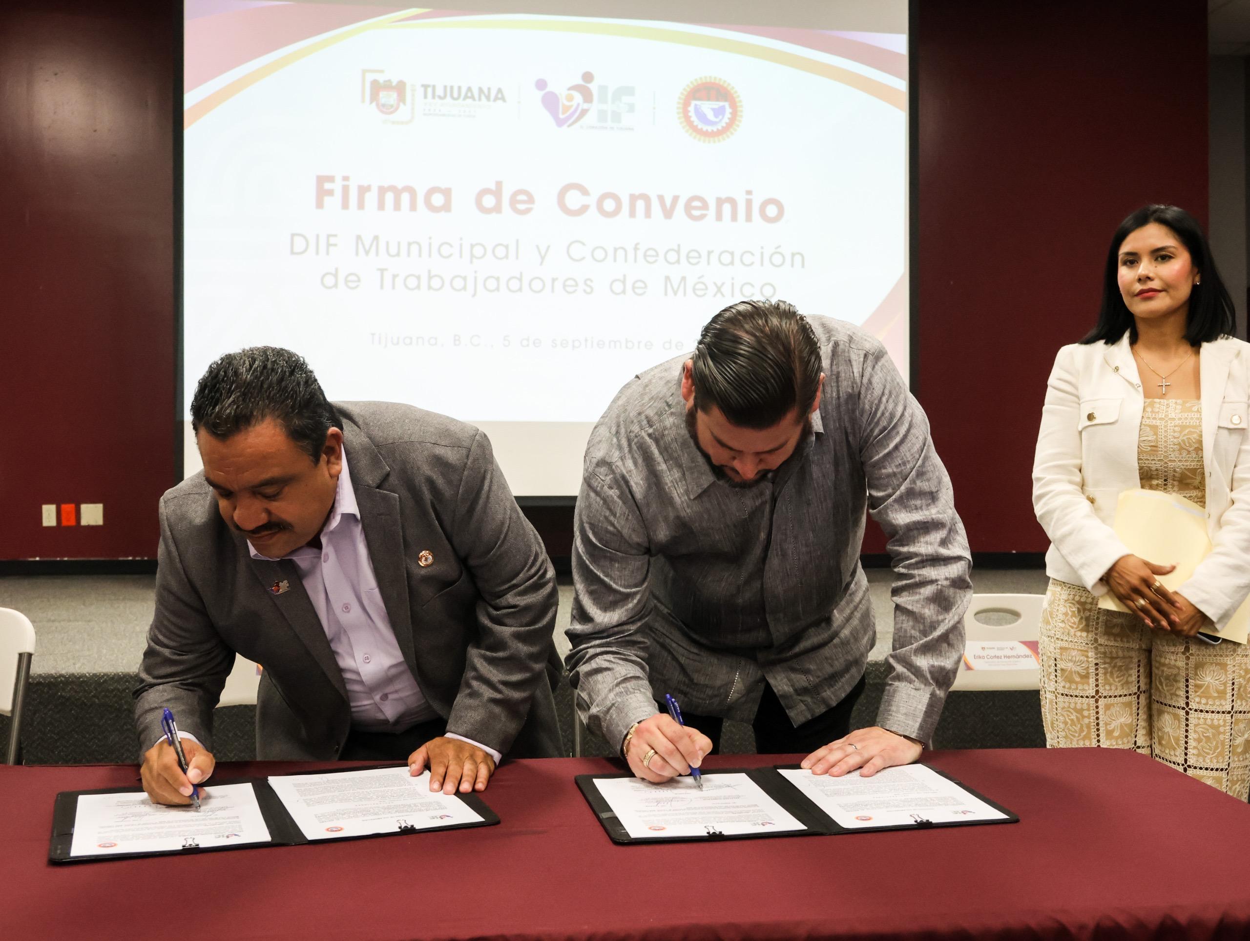 *Tijuana, Baja California, 5 de septiembre de 2025.* El presidente municipal, Ismael Burgueño Ruiz y el secretario general de la Confederación de Trabajadores de México, Baltazar Gómez Ruiz, firmaron un convenio de colaboración, con el objetivo de impulsar acciones conjuntas que promuevan la inclusión y el respeto hacia las personas con discapacidad.
