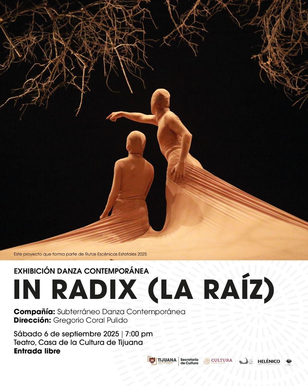 *Tijuana, Baja California, a 5 de septiembre de 2025.* El gobierno del presidente municipal, Ismael Burgueño Ruiz, a través de la Secretaría de Cultura, impulsa la difusión del talento local con la presentación de la obra In Radix (La Raíz), que se llevará a cabo el próximo sábado 6 de septiembre a las 19:00 horas en el Teatro de la Casa de la Cultura de Tijuana, con entrada libre para todo el público.