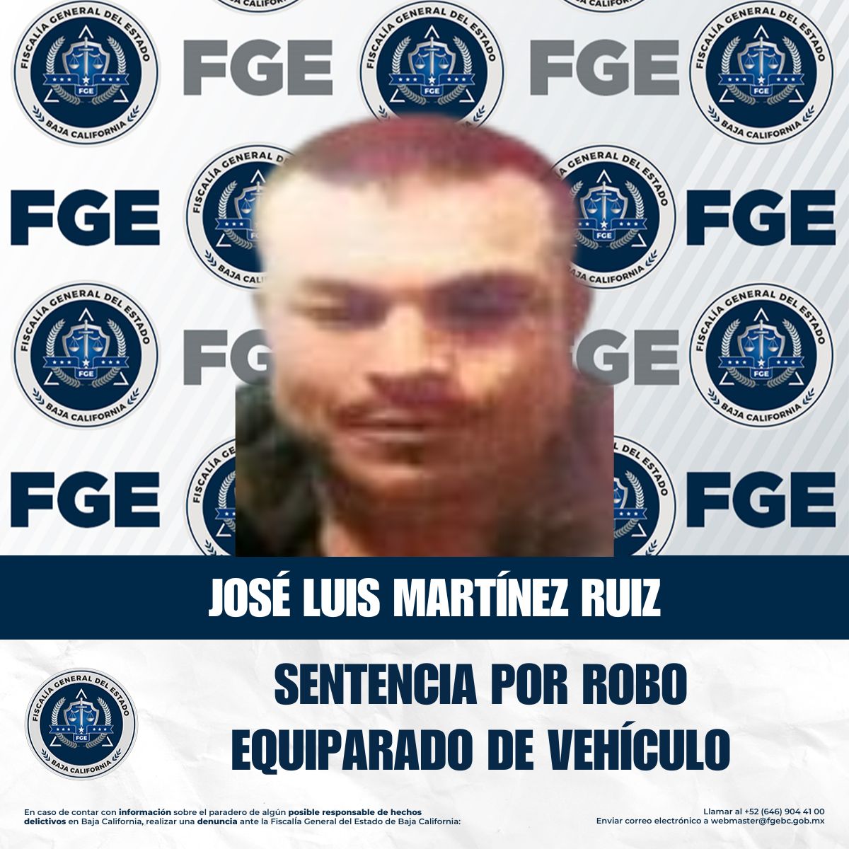 TIJUANA, BAJA CALIFORNIA, A 18 DE SEPTIEMBRE DE 2025.- La Unidad de Investigación de Robo de Vehículos, adscrita a la Fiscalía Regional de Tijuana, obtuvo sentencia condenatoria en contra de José Luis Martínez Ruiz, también conocido con distintos alias, por el delito de robo equiparado de vehículo de motor, en su modalidad de uso.
