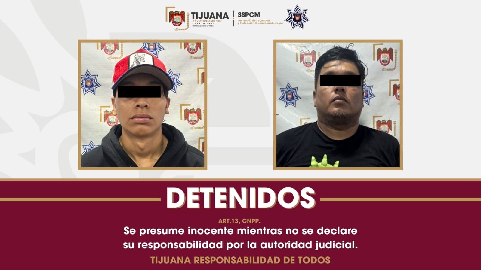 Tijuana, Baja California, a 23 de septiembre de 2025.- Gracias a la pronta y efectiva reacción de agentes de la Policía Municipal de Tijuana, fueron asegurados dos sujetos presuntamente responsables de al menos 26 robos con violencia cometidos en distintas sucursales de tiendas Oxxo en la ciudad.
