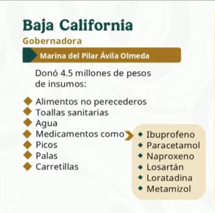 El Gobierno del Estado de Baja California señaló que, además de este envío inicial, se continuará recibiendo donaciones en los centros de acopio instalados en las oficinas del DIF Estatal en Mexicali, Tijuana y Ensenada, así como en las instalaciones de Protección Civil Estatal en Mexicali y Tijuana.