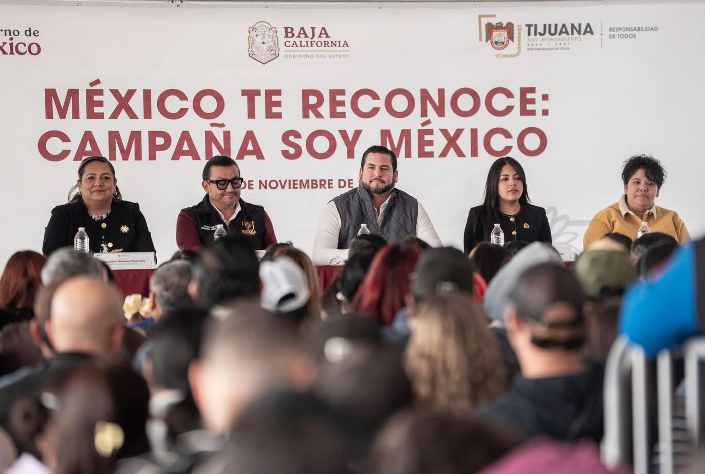 *Tijuana, Baja California, a 11 de noviembre de 2025.* El presidente municipal, Ismael Burgueño Ruiz, encabezó la ceremonia de entrega de más de 200 actas de nacimiento de personas binacionales que se registraron en la iniciativa México te Reconoce: Campaña Soy México, que en Tijuana alcanzó la cifra histórica de 14 mil 346 trámites durante los meses de agosto y septiembre de este año.