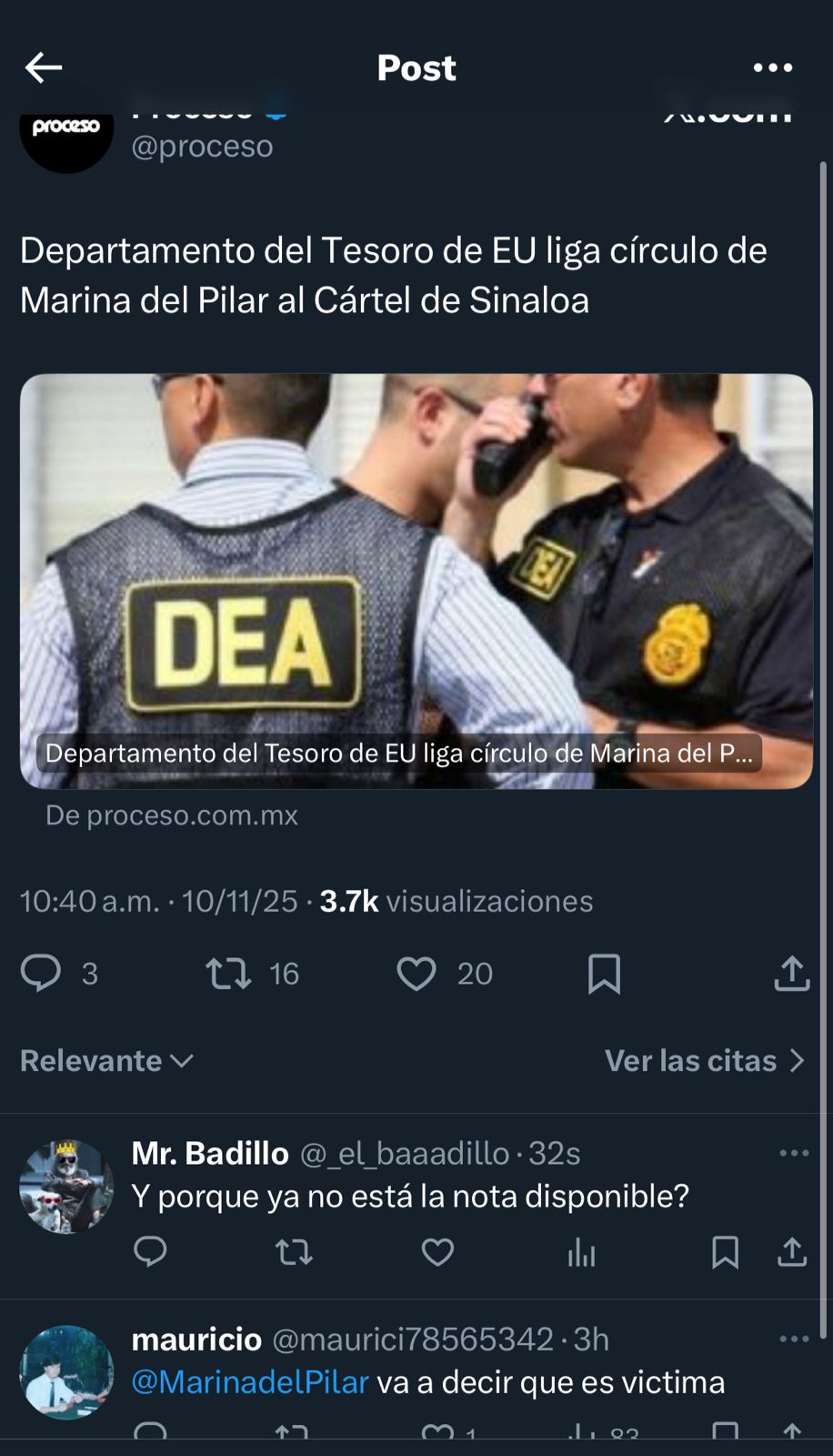 Sin embargo, el enlace al reportaje original comenzó a mostrar un error 404 en el sitio web de Proceso, señal de que el contenido fue retirado o bloqueado del servidor. A partir de ese momento, solo quedaron capturas de pantalla y fragmentos compartidos en redes sociales, que rápidamente se viralizaron entre periodistas, activistas y usuarios que acusan un intento de silenciar la información.