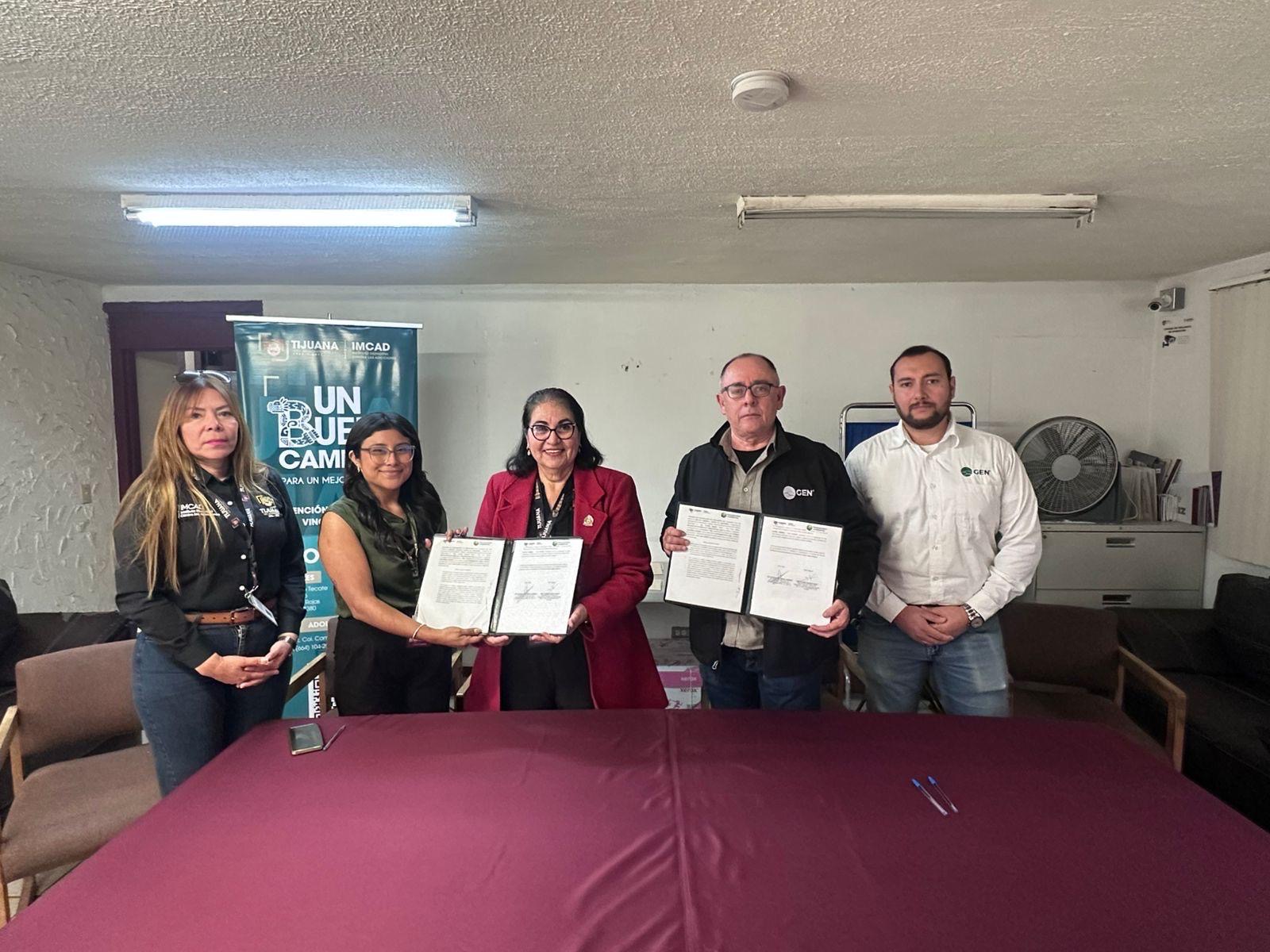 *Tijuana, Baja California, a 8 de diciembre de 2025.* El XXV Ayuntamiento de Tijuana, a través del Instituto Municipal Contra las Adicciones (IMCAD), formalizó un convenio de colaboración con la Promotora Ambiental GEN, como parte de las instrucciones del presidente municipal, Ismael Burgueño Ruiz, de establecer alianzas estratégicas, para fortalecer la prevención y atención de las adicciones en la ciudad.