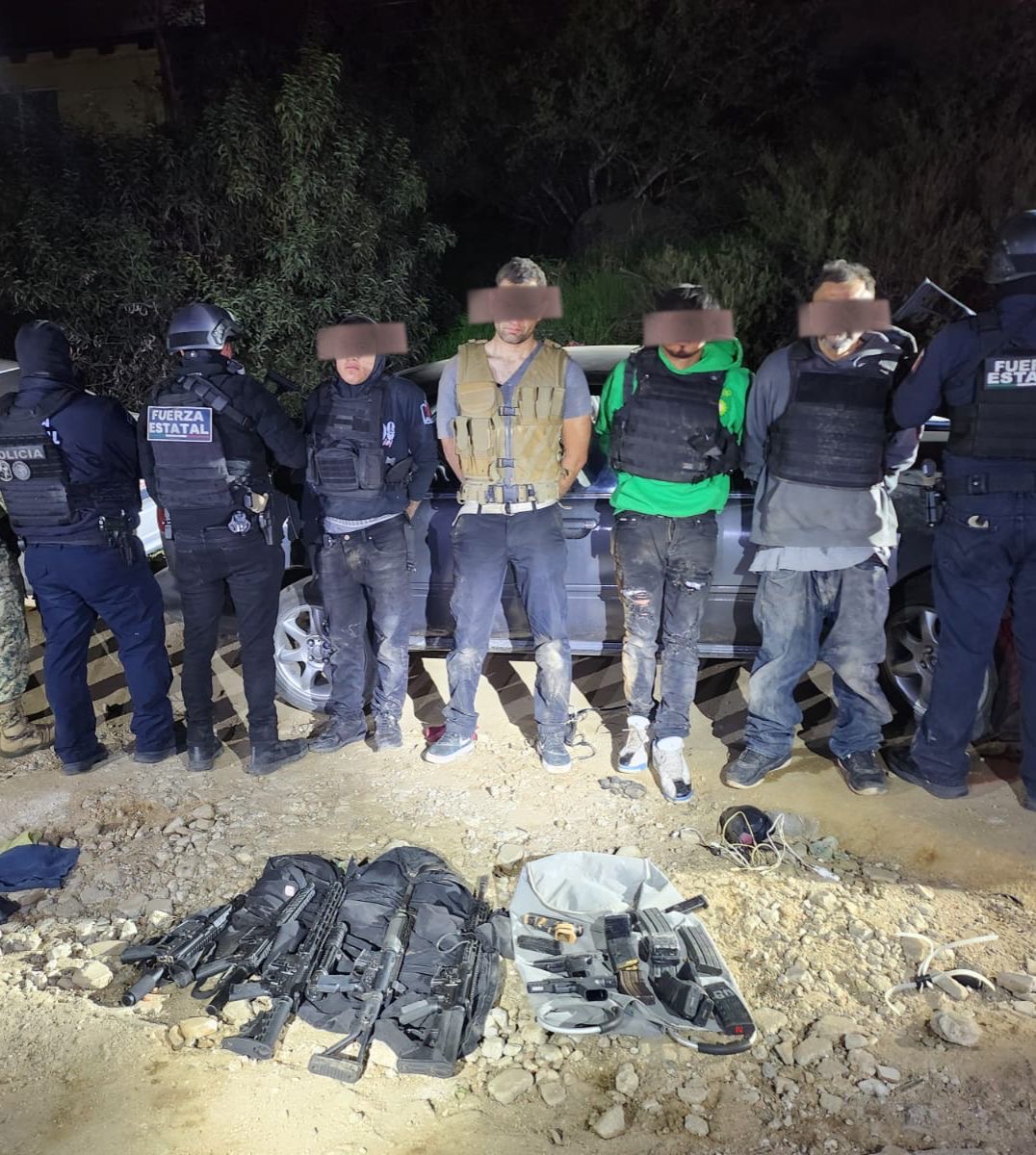 Un operativo encabezado por el grupo especial PROTEO, adscrito a la Fuerza Estatal de Seguridad Ciudadana (FESC), dejó como resultado la detención de cuatro personas y el aseguramiento de un importante arsenal la noche del martes en el municipio de Tecate.