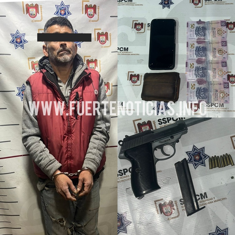 Con las características proporcionadas por el reportante, los oficiales implementaron un operativo de búsqueda, logrando ubicar a un sujeto que coincidía con la descripción. Al realizarle una revisión preventiva, se le aseguró un objeto tipo pistola calibre .22, abastecido con cartuchos útiles, así como un teléfono celular y la cantidad de 200 pesos en efectivo.