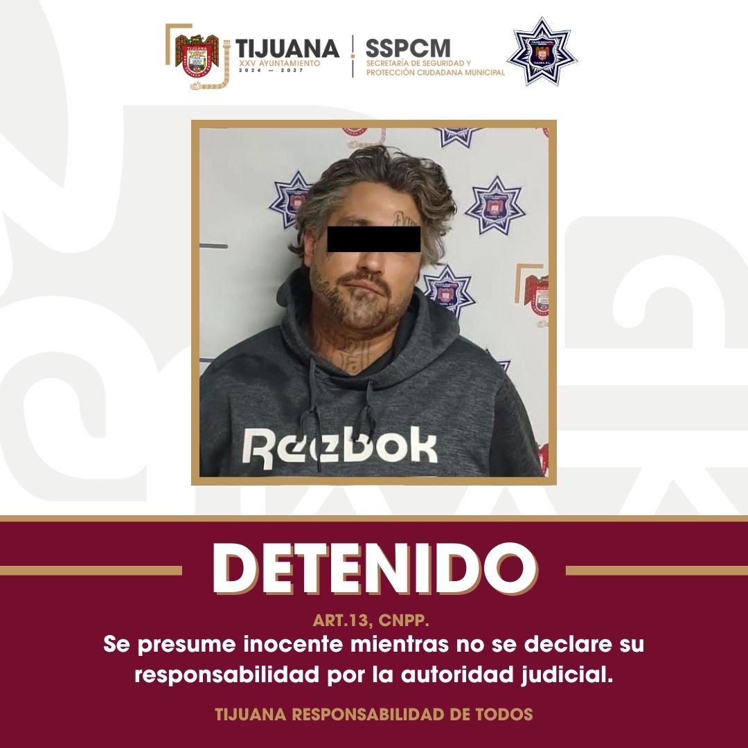 La Secretaría de Seguridad y Protección Ciudadana Municipal informó sobre la detención de Alejandro “N”, de 42 años de edad, luego de atender un reporte recibido por la Central de Radio en el fraccionamiento El Rosarito, en la ciudad de Tijuana.