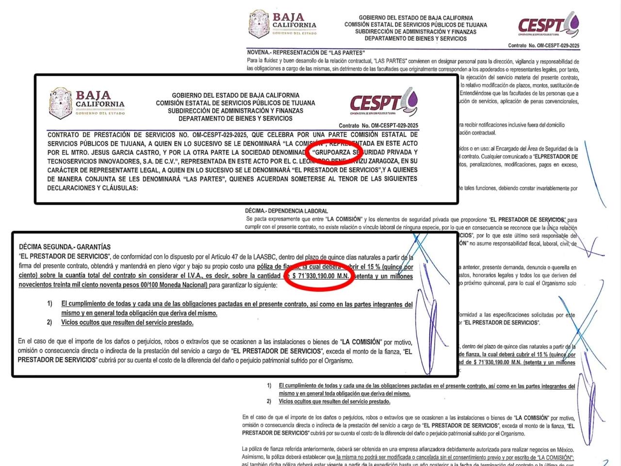 Entre las adjudicaciones destaca un contrato por 77.6 millones de pesos asignado por la Comisión Estatal de Servicios Públicos de Tijuana (CESPT) para la vigilancia de 124 instalaciones mediante 236 elementos de seguridad.