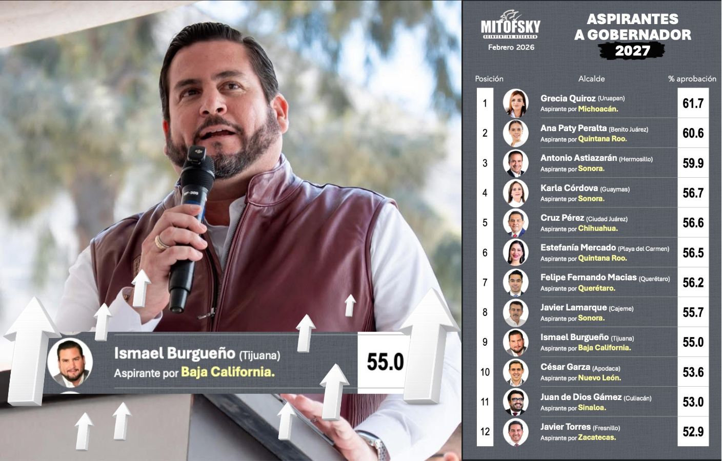 Mientras varios alcaldes a nivel nacional buscan elevar su aprobación para competir por gubernaturas, Burgueño ya parte con una ventaja sólida en percepción ciudadana.