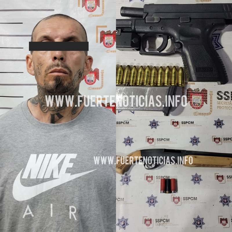 Un hombre fue detenido por elementos de la Policía Municipal tras ser sorprendido en posesión de un arma corta, un arma larga y varias dosis de droga en la colonia Empleados Federales, en las inmediaciones de Plaza Viva Tijuana.